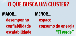 Outra coisa importante para um cluster é a eficiência energética, além do desempenho. Embora seja fácil encontrar no mercado PCs com clock de 3GHz, raramente você encontrará isso em clusters. Isso porque o consumo energético (junto com aquecimento do sistema e consequente necessidade de mais potência de refrigeração) aumenta exponencialmente com a frequência de clock. O mais comum para clusters são processadores na faixa de 2,2 – 2,4 Ghz. É claro que, por enquanto, estamos falando apenas de CPUs. Mas porque não pensar em GPUs (placas gráficas)? Para computação científica! Isso mesmo!