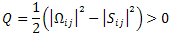 O Critério Q é definido como a parte positiva do segundo invariante do tensor gradiente de velocidade, traduzido pela seguinte expressão: